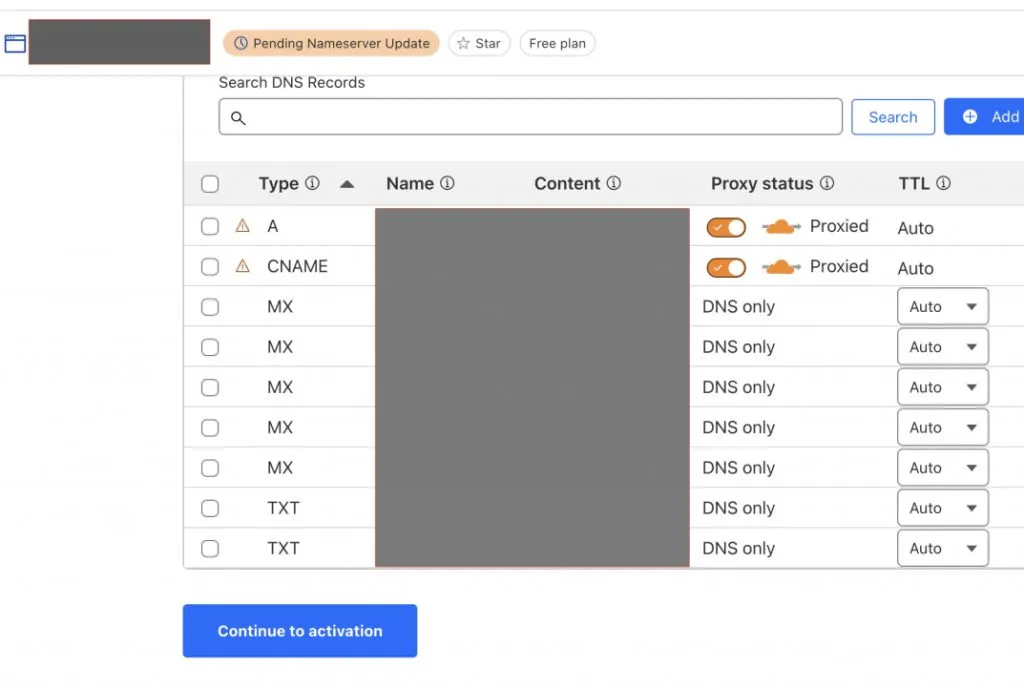 Cloudflare会自动抓取现有的dns配置,非常方便。