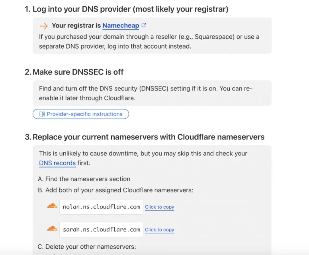 所以,只要网站有一些流量,我就会把namecheap上的域名的name server改成cloudflare的name server,也就是,用cloudflare来解析域名。