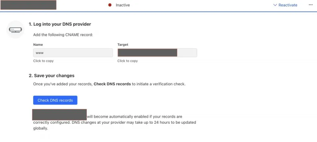 如果网站原本正在运行,这个时候,往往会变成cloud flare的错误页面。需要重新激活custom domain