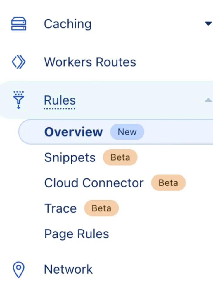 进入你的域名的管理页面,左侧导航到“Rules—>Overviews”页面。