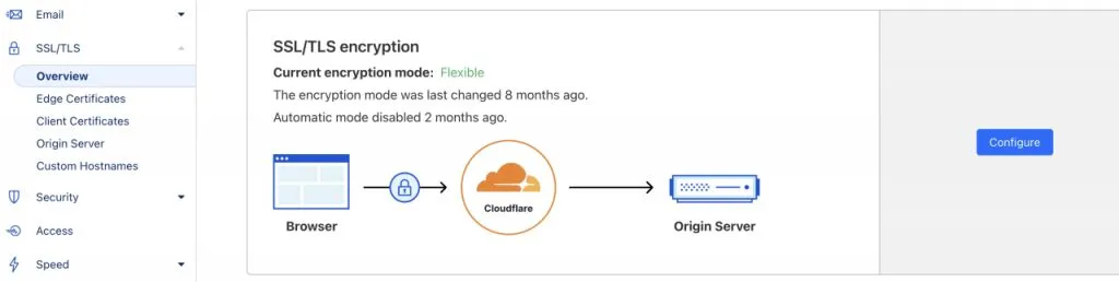 点击“Configure”,进入配置页面,选择Full(Strict),保存,即可。