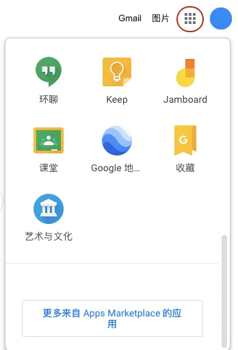 Google页面的右上角的图表(用红线框框起来的),点击后,出现一些常用的Google的产品,拉到最下边后,会有一个文字链接。
