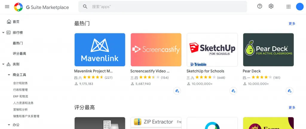 粗略看了下,产品很多。基本上分两种,一种是独立的SAAS,然后集成到Google用户体系中(使用Google的账号并以Google为入口),另一种就是基于Google的产品的插件,有专门的分类。看图——