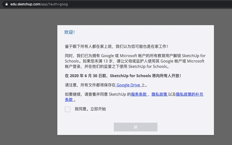 点击这个图标就会进入sketchup的网站并使用google账号登录。