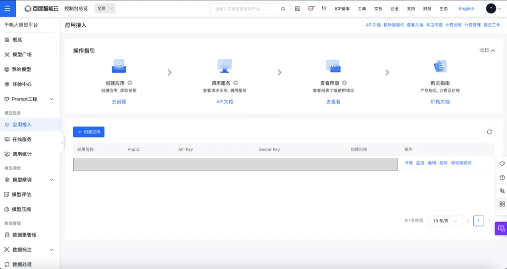 如果没有申请过百度千帆大模型,可能需要填表申请一下。