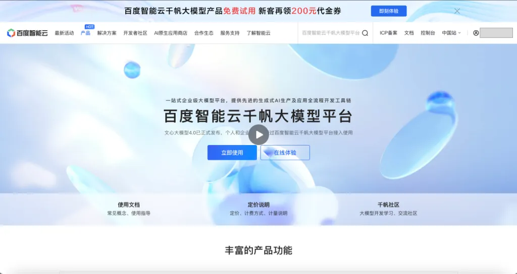 申请通过后,在这个页面直接点“立即使用”,就可以进入千帆的控制台了。