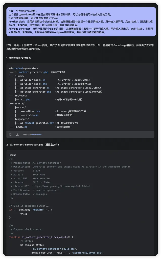 今天,我们也用这个提示词让Gemini 2.0 Flash写这个Wordpress插件。