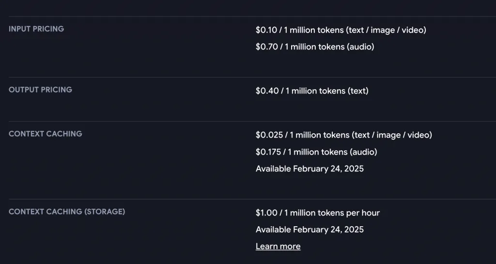 Gemini 2.0 Flash的API价格