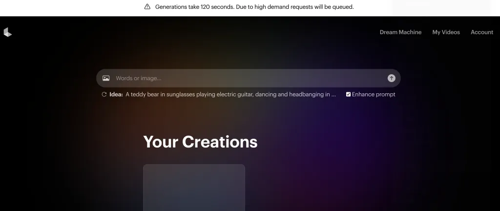 Luma AI 是一个视频生成大模型,可以生成120秒的视频。可以通过文本生成视频,也可以通过图片和文本生成视频。