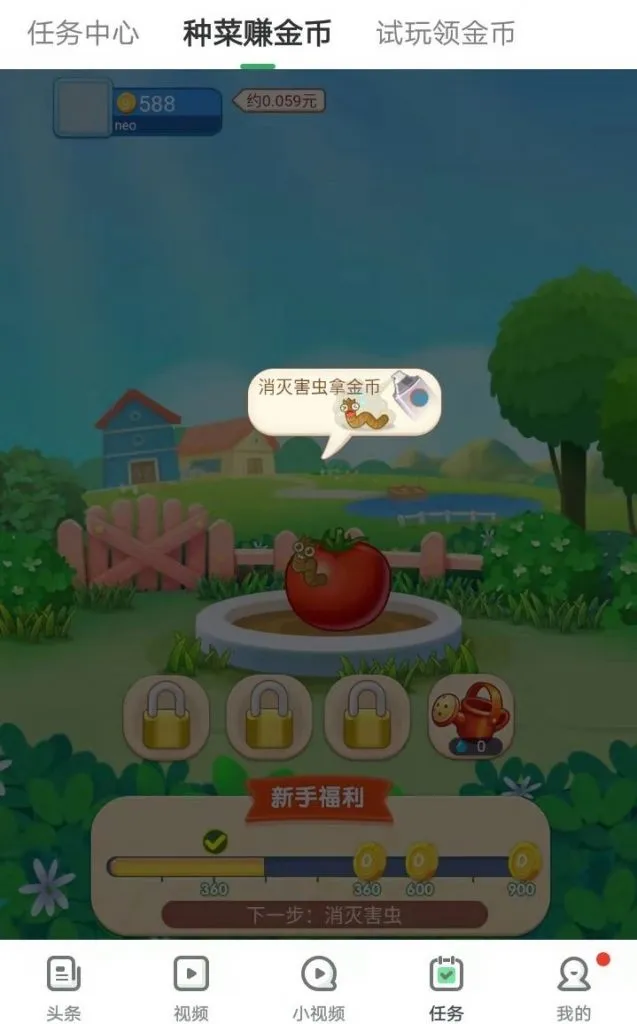 当然,趣头条的积分体系,不仅让用户可以得到最后的成果和奖励(菜),也几乎将每一个用户行为(比如除害虫)也加入了小的奖励。这,进一步加大了用户周期性处理这些事件的动力。